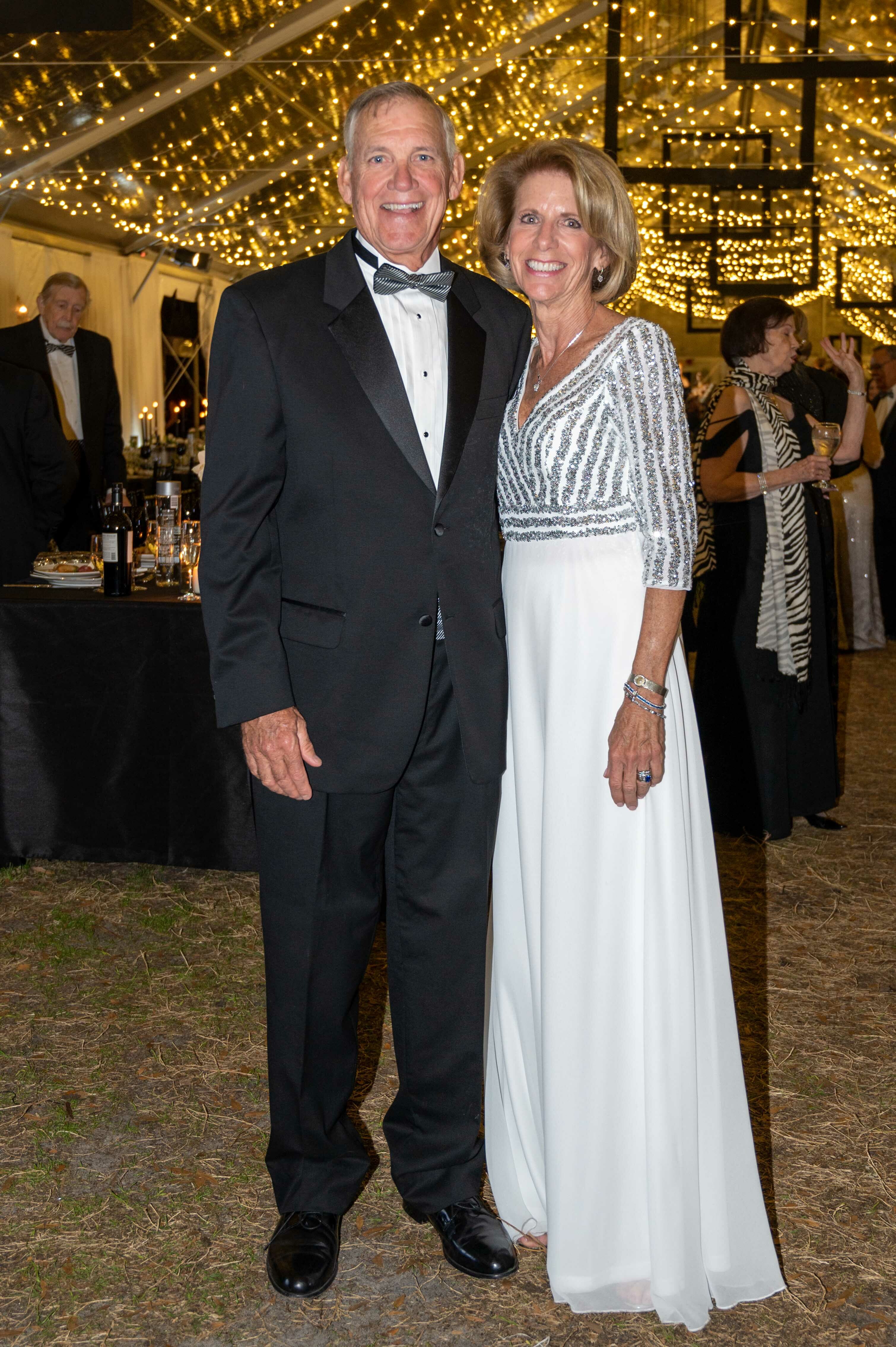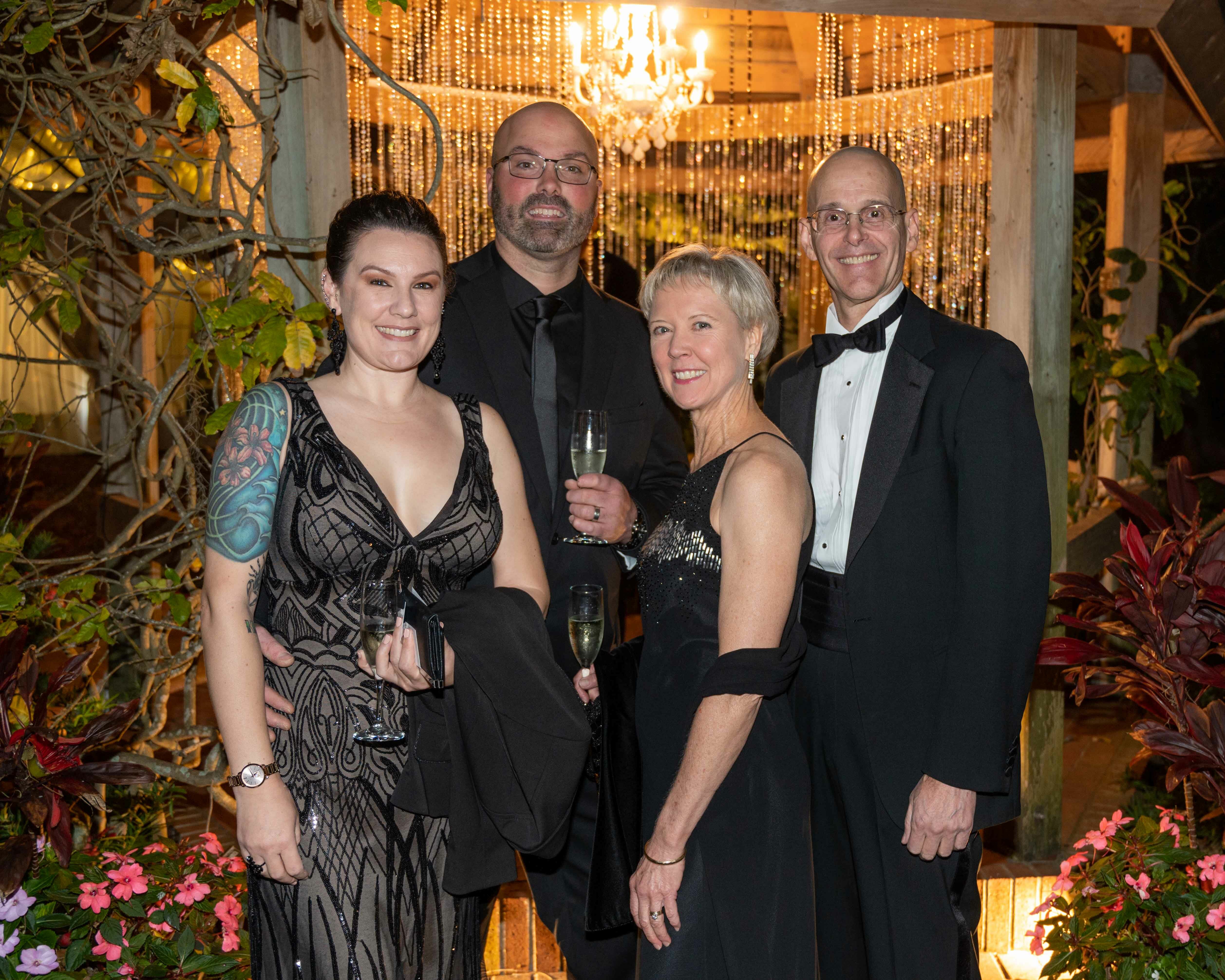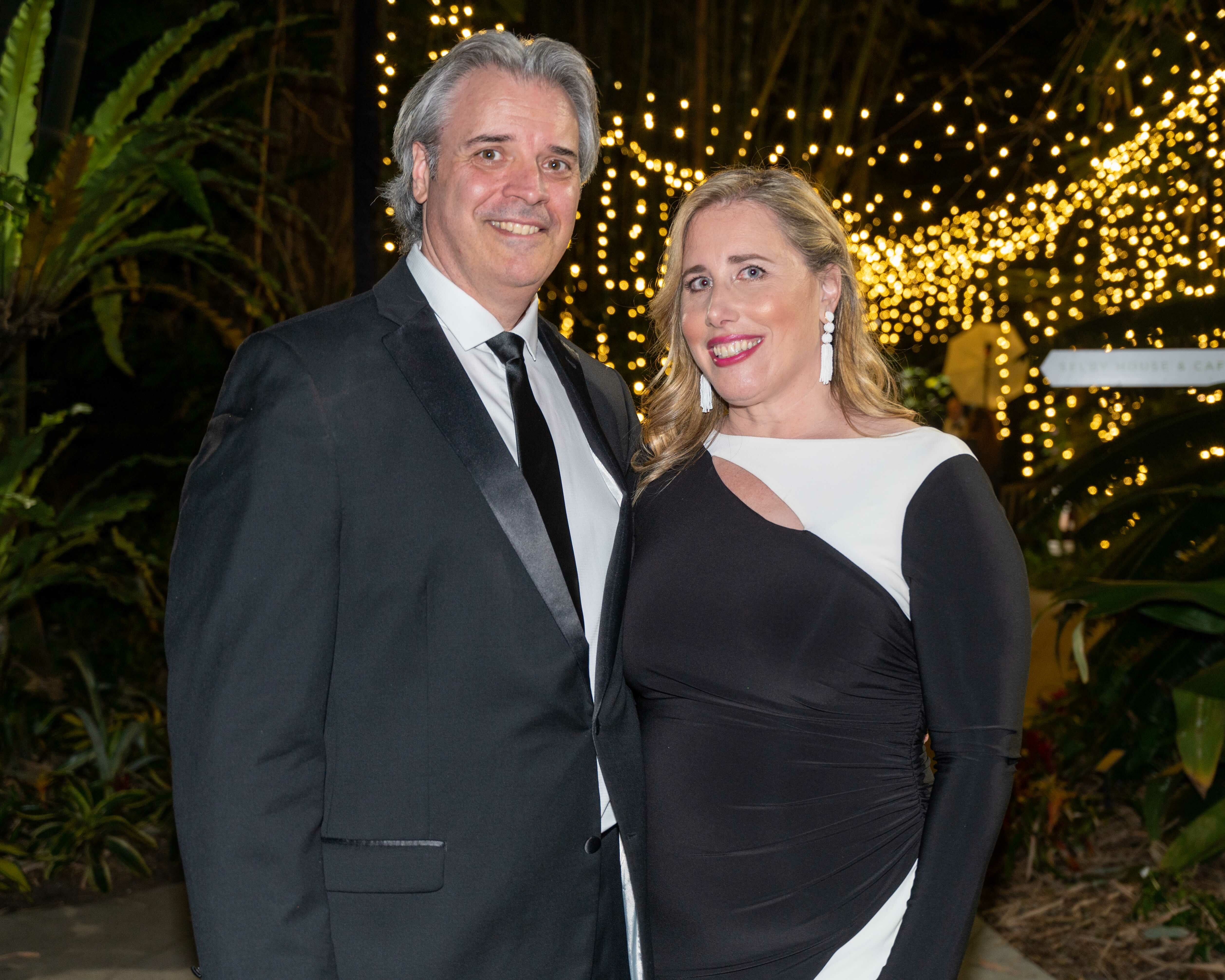 There were many variations of black and white attire on display at "Because the Night," this year's Orchid Ball at Marie Selby Botanical Gardens. That's because the theme of the event was tied to the current exhibit there, Robert Mapplethorpe and Patti Smith: Flowers, Poetry, and Light, which features several of Mapplethorpe's famous black and white photos, in addition to archival pictures of the two artists, poetry and lyrics by Smith, and more. Guests dined on charcuterie, scallops and prawns and chateau of beef while enjoying live music after strolling through lighted pathways to the party tent.