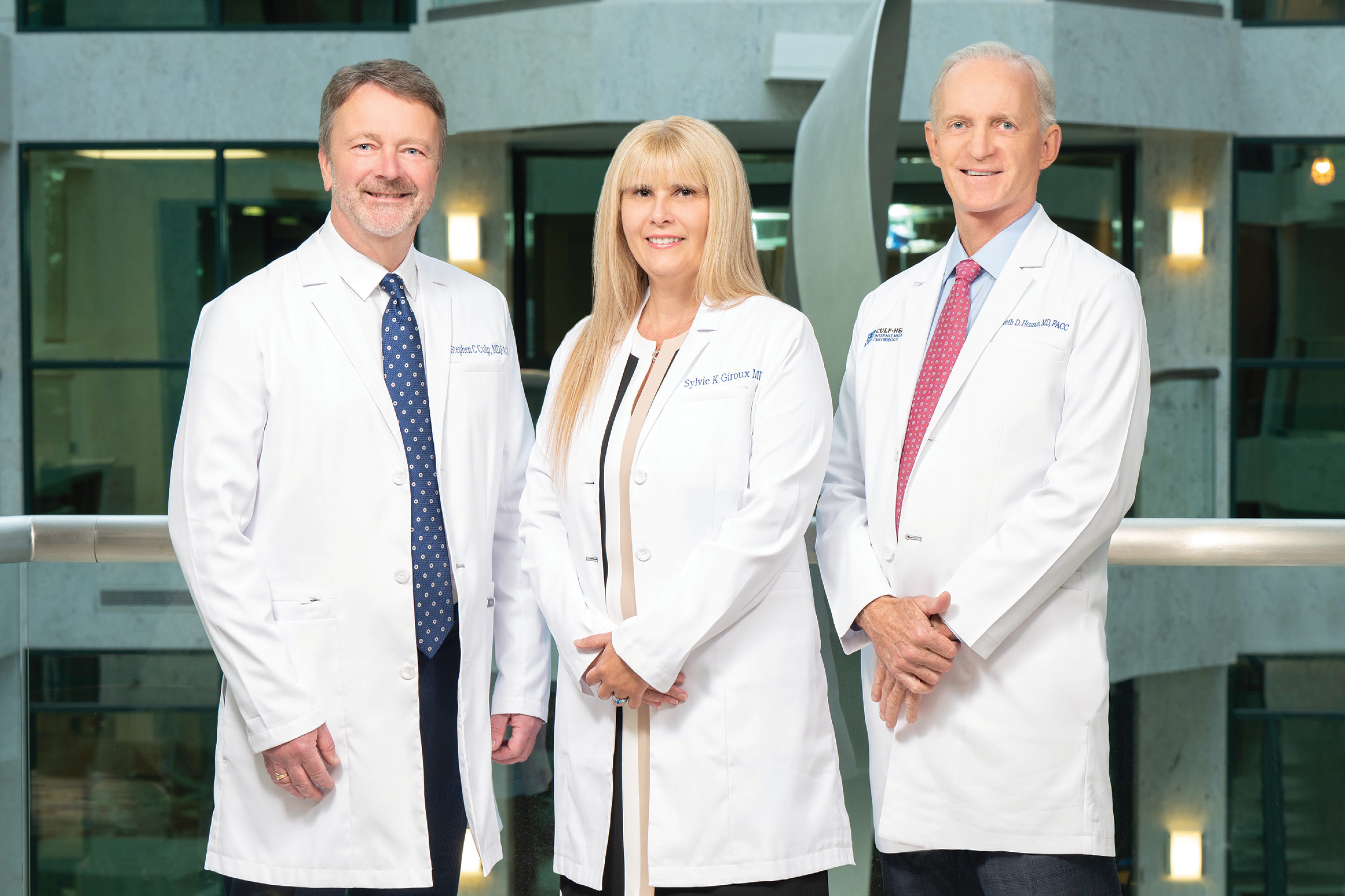 Culp-Henson is a premier concierge medical practice founded by Stephen C. Culp, MD, FACC, FSCAI, and Kenneth D. Henson, MD, FACC in 2014, proudly welcoming Sylvie-Karine Giroux, MD, FACC to the team in 2023.