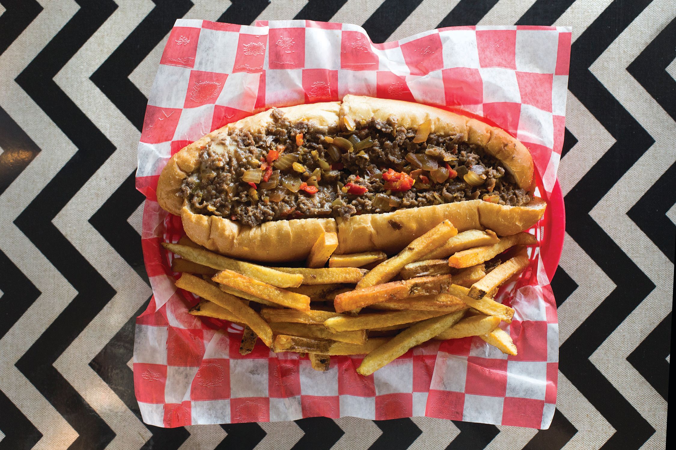 One of the oldest establishments offering a taste of Philly, Charlie's makes no-frills, darn-good cheesesteaks balanced with melted white American (one step up from Cheez Whiz) and sautéed diced onions. Founder Angelo Charlie Covino would be proud of the next generation holding down the tradition of making a tasty cheesesteak, made even more authentic by the age of the seasoned grill.