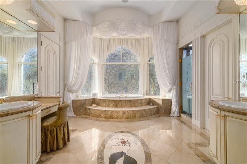 The villa (sogno is the Italian word for “dream”) was built in 2002. It boasts six bedrooms, six baths (plus two half baths) and enough marble to fill a quarry. Dramatic touches include a sweeping double staircase, a catering kitchen in addition to the regular kitchen (which, by the way, is anything but regular) and an infinity pool overlooking the Gulf. The architectural style is a sort of Beverly Hills meets the French Riviera—not very subtle, but you can see where your $18 million went.