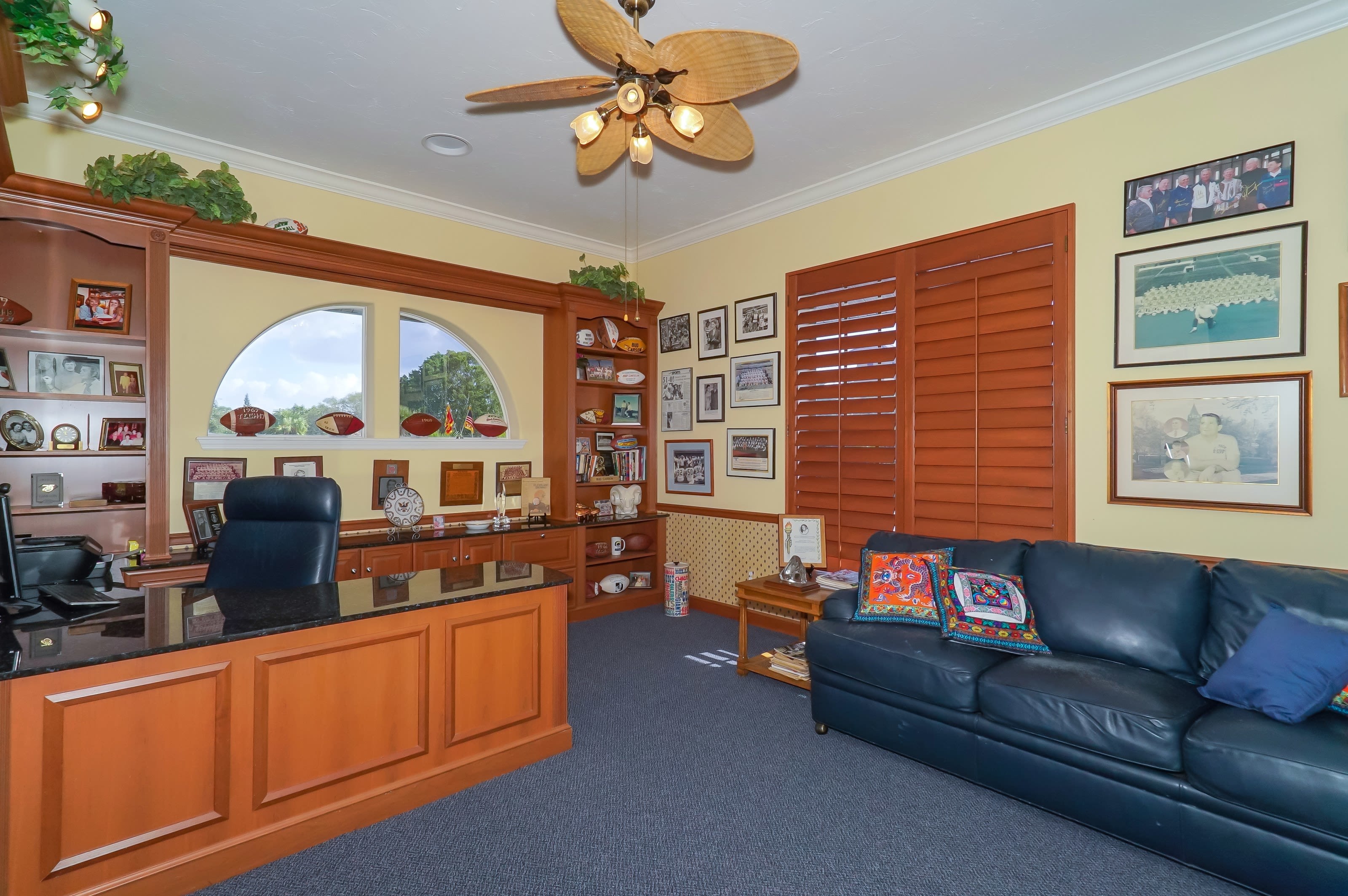 Inside you’ll find three bedrooms and three baths, plus an enormous walk-in closet where Linda keeps her extensive TV wardrobe. Bud’s office—he died in 2005±is still mostly intact, with shelf after shelf of priceless football memorabilia. The home’s size—just over 3,000 square feet—makes it perfect for large-scale entertaining, and it’s even hosted several weddings.