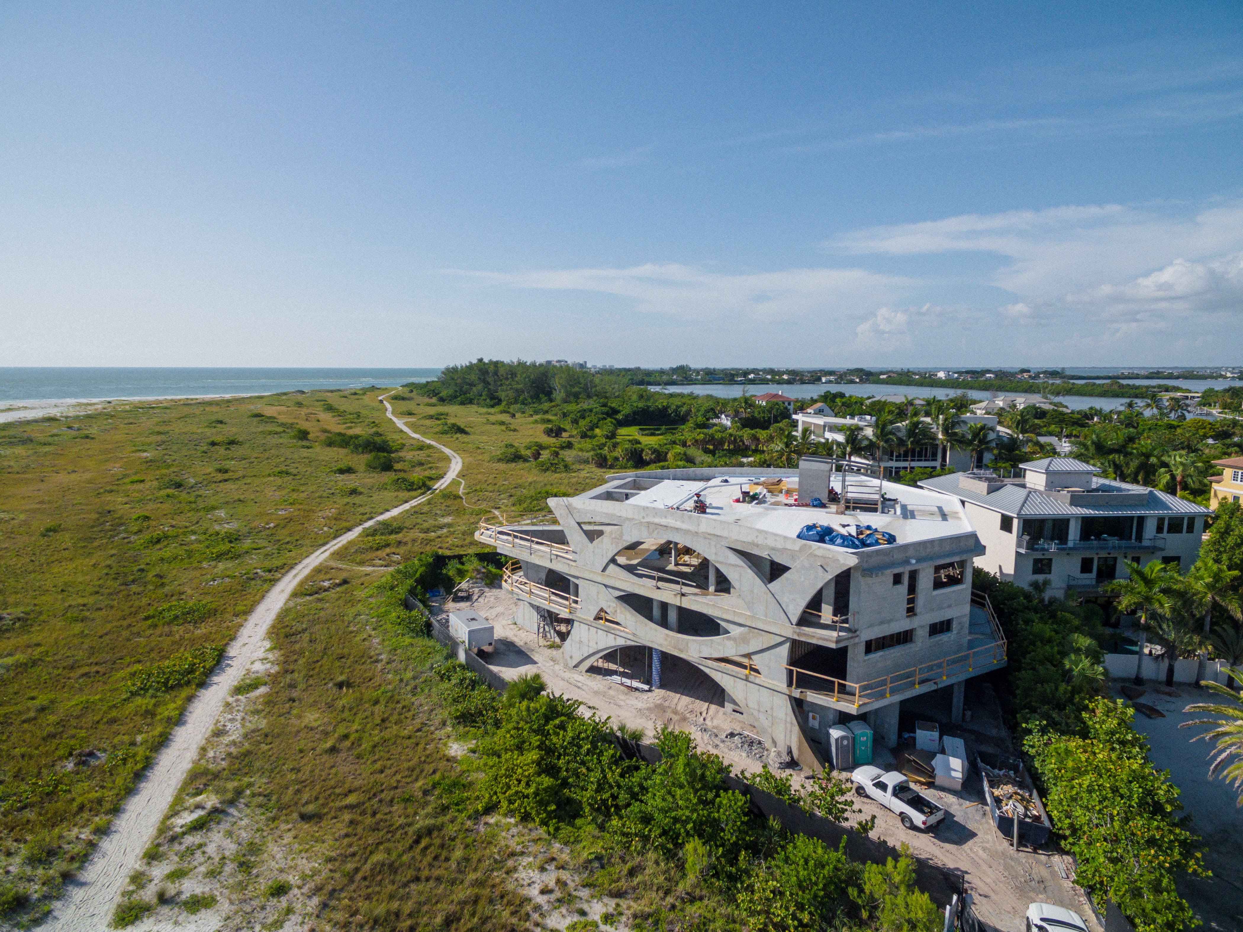 If you've been out to Lido Beach in recent months, there's no way you missed it: the massive new home currently under construction at 1 John Ringling Blvd., right near the island's northern stretch of public beach.