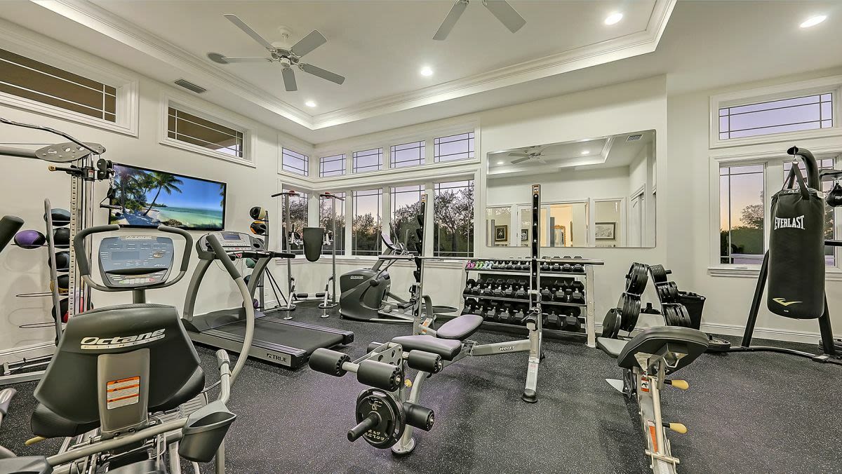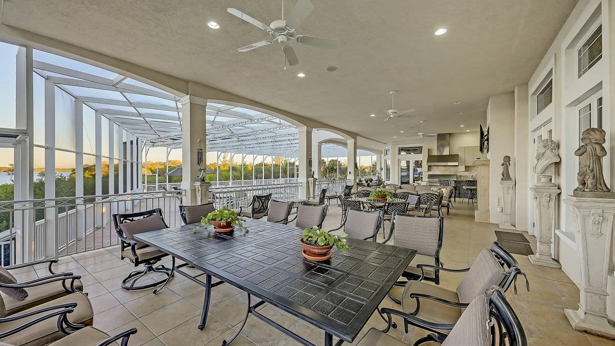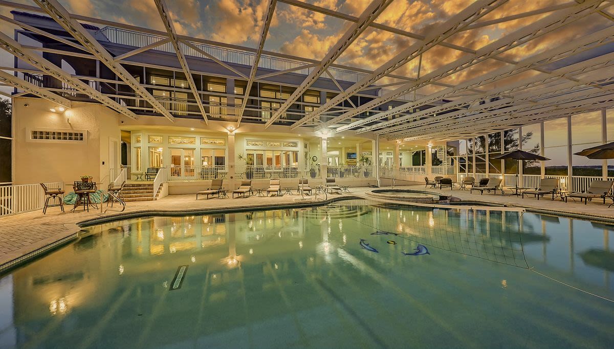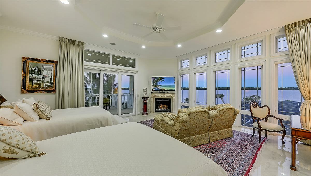 Oddly enough, the home faces Lemon Bay, not the Gulf (though you have deeded beach access). It’s gated and set on three acres of wooded land. Lots of privacy. Count on an hour’s drive to downtown Sarasota.