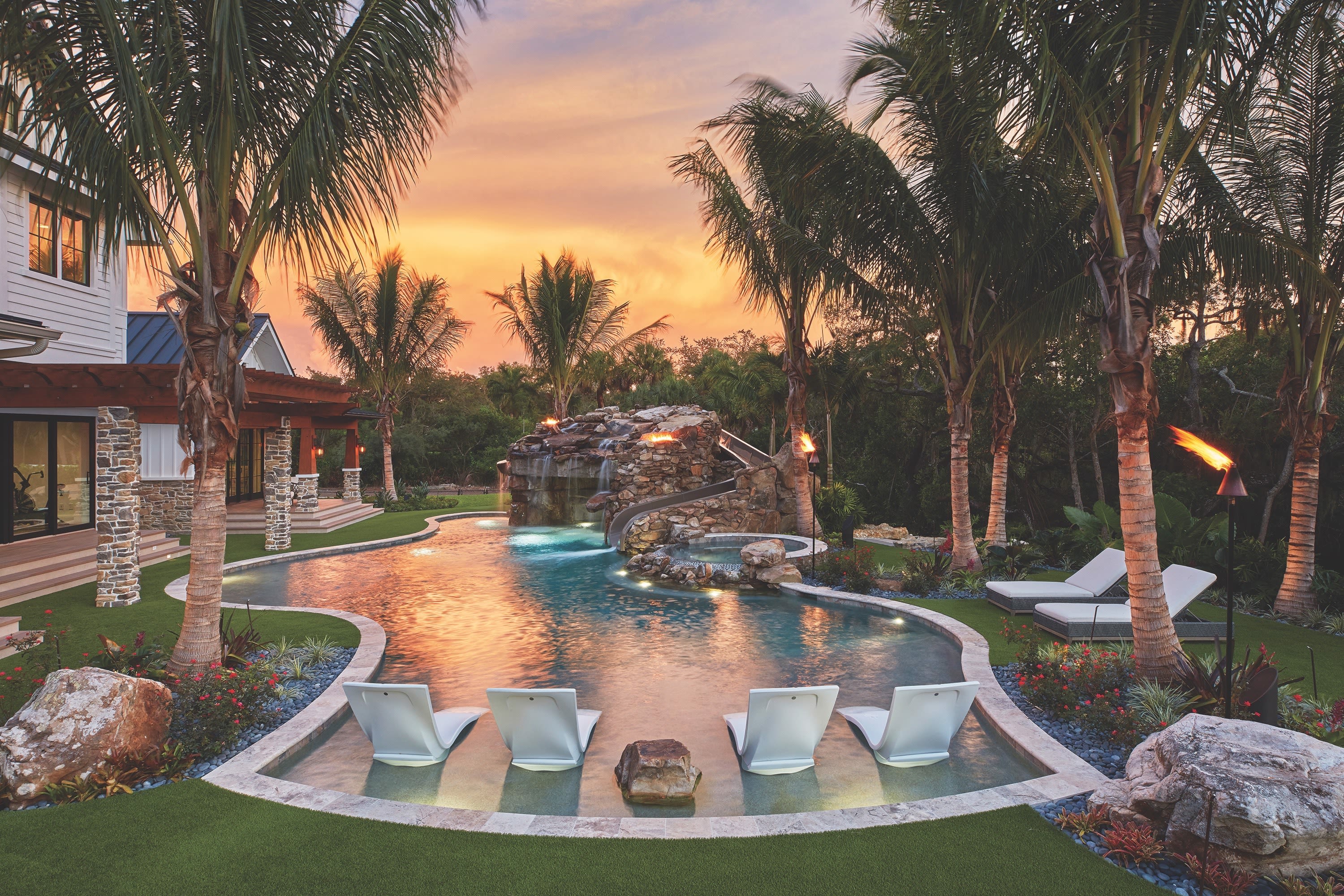 Local custom pool company Lucas Lagoons earned the most awards at The Florida Swimming Pool Association's (FSPA) 2021 annual Design Awards Competition. We're not surprised. We've written about the company's standout work before, like the split level, infinity pool and spa they designed for famed golf instructor David Leadbetter. Lucas Lagoons even had a TV show about their fabulous pool creations on Animal Planet, and one of their over-the-top pools landed on HGTV’s Amazing Water Homes.