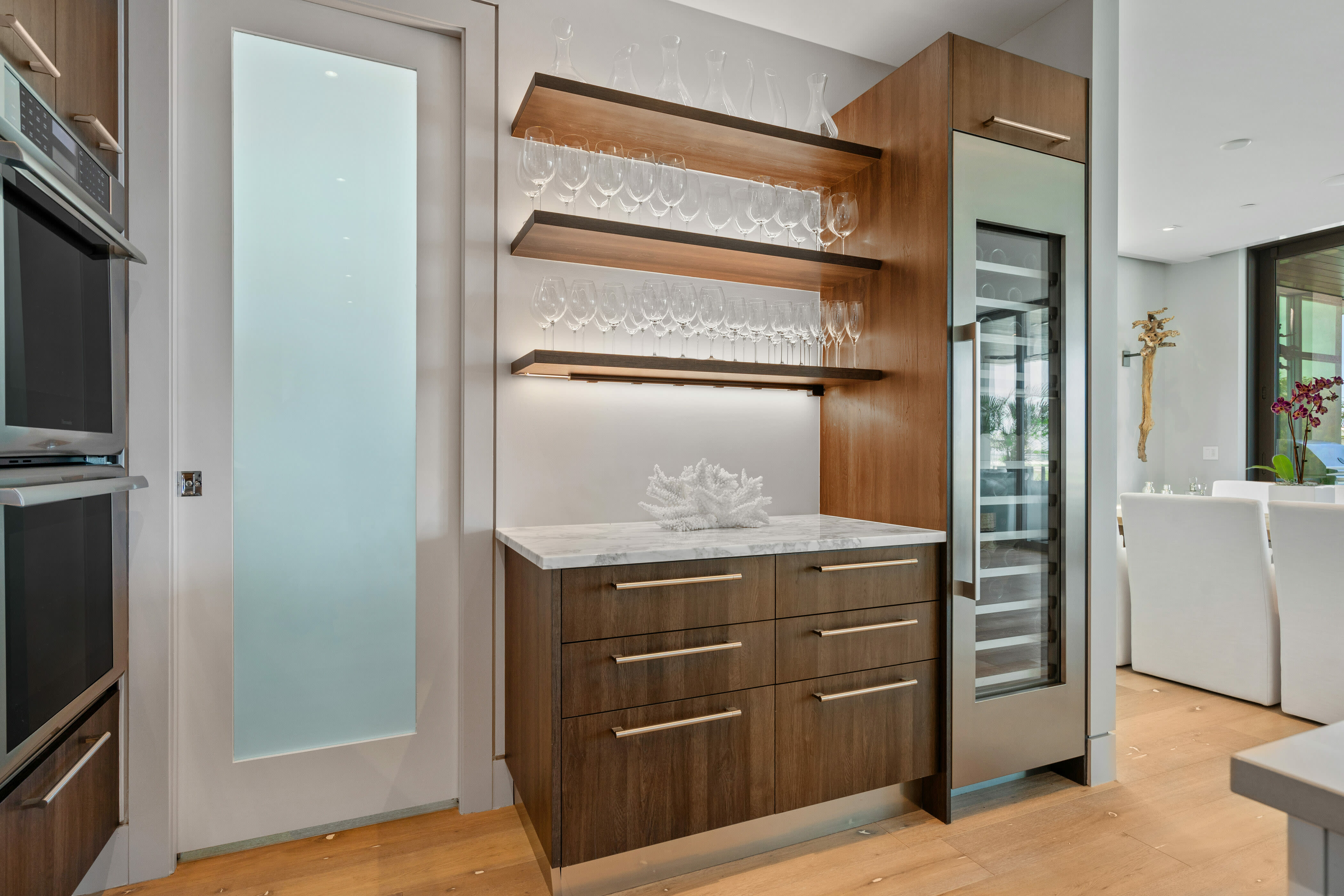 It was everything Don Patterson needed when, in 2017, he moved into one of the two residences on the first floor of the five-story One88 building on Golden Gate Point. At the time, the condo was a brand-new build and cost him $2.25 million. It was a shell back then, he says, and he added “a nice butler’s pantry, changed the master bath for a better layout” and “upgraded everything” in the 3,024-square-foot space.