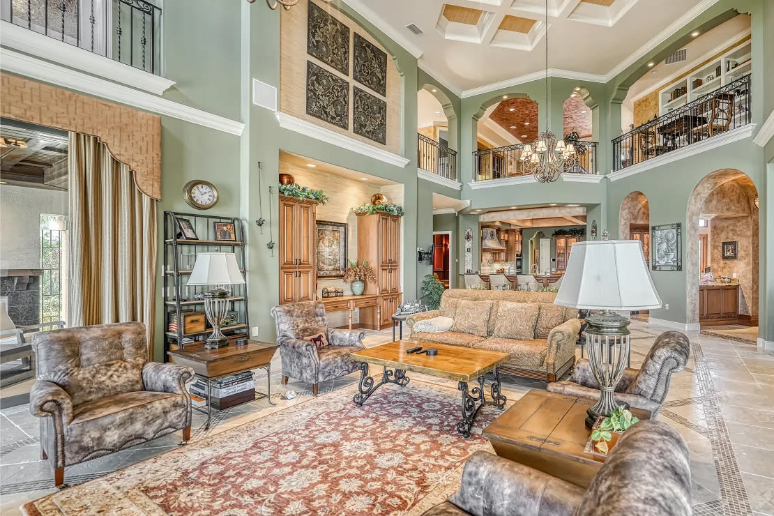 Located on a cul de sac, the gated home at 97 S. Washington Drive is loaded with carefully carved wall nooks and coffered ceilings scraping 26 feet, reminiscent of Old World churches. If that sounds good to you, it can be yours for $11,995,000.