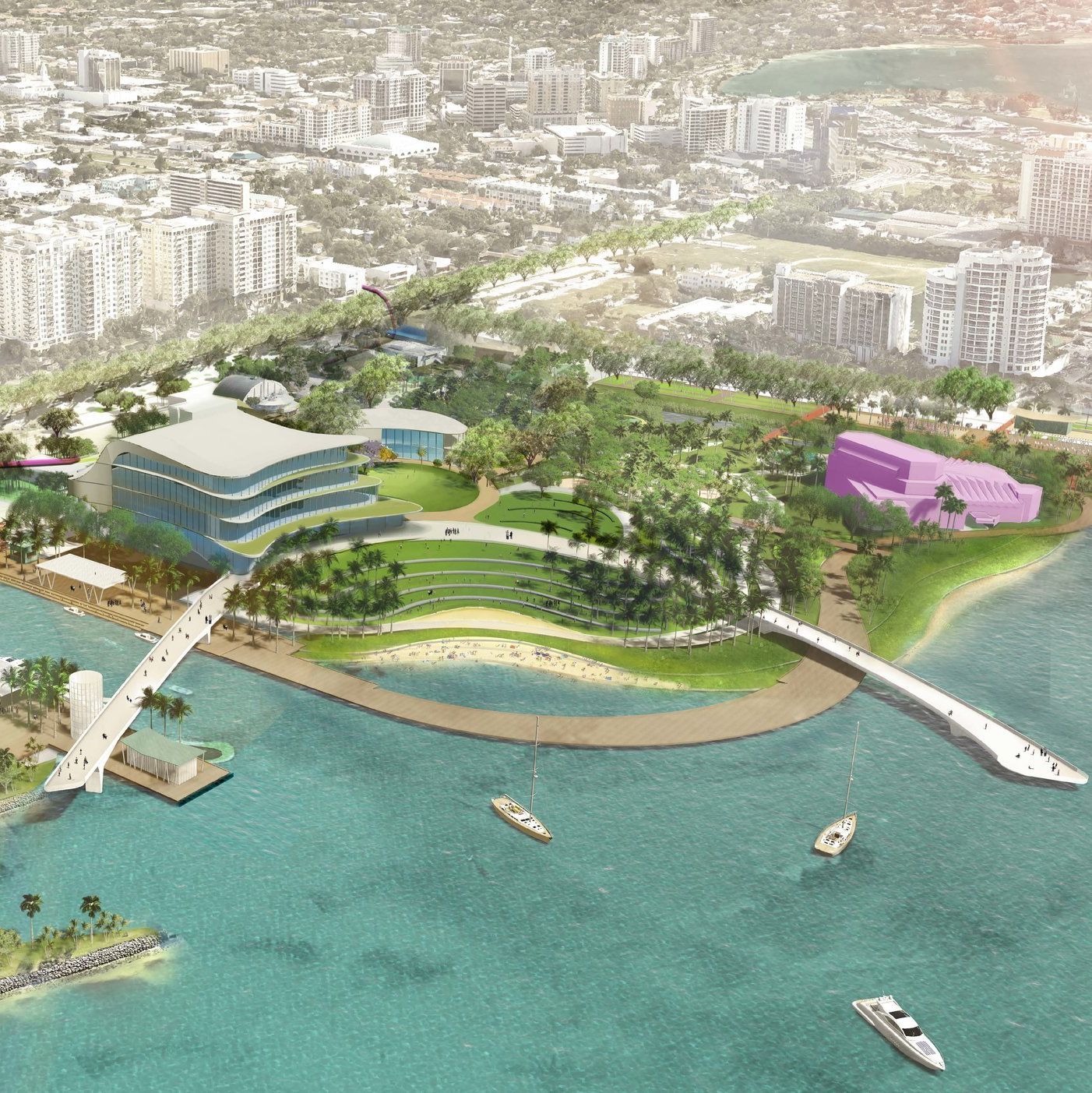 Called The Bay, the project will transform 53 acres of underutilized city waterfront that, up until now, has mostly been a vast parking lot for the Van Wezel Performing Arts Hall.